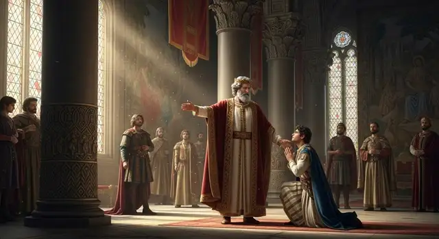 6 E me disse: Teu filho Salomão, ele edificará a minha casa e os meus átrios, porque o escolhi para filho e eu lhe serei por pai.